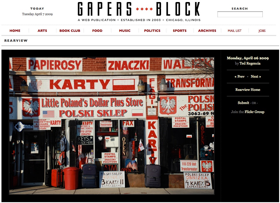 Photo featured in Gapers Block 04/19/201004/19/2010 by Ted Regencia, posted in Photography Featured in Gapers Block on 4/7/09 Photography by Ted Regencia Share this: Share on Facebook (Opens in new window) Facebook Share on X (Opens in new window) X Email a link to a friend (Opens in new window) Email Like Loading...