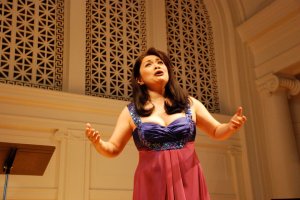 The Neo-classical Nichols Hall, originally built in 1912 as the First Church of Christ, Science was the perfect venue for Ocampo’s Chicago debut. The 550-seater hall’s excellent acoustics accentuated Ocampo’s powerful voice. Her every enunciation of the Filipino lyrics sounded like an Italian aria. Not surprising, considering that she played Flora Bervoix in Verdi’s La Traviata at the Singapore Lyric Opera.