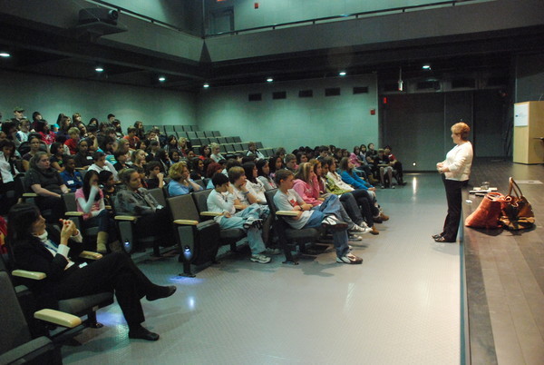In one of the more poignant scenes of the daylong event, the students met with Rodi Waterman Glass, 74, who was born in The Netherlands and was 6 years old when her whole family was rounded up by the Nazis and taken to the Westerbork concentration camp.