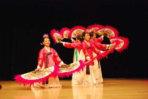 SKOKIE, Ill — Donning vibrantly colorful chima jeogori Korean dress, Junghee Lee and four of her fellow performers gracefully glided onstage to perform the Buchaechum fan dance, one of the numbers presented during Korean-American Day.