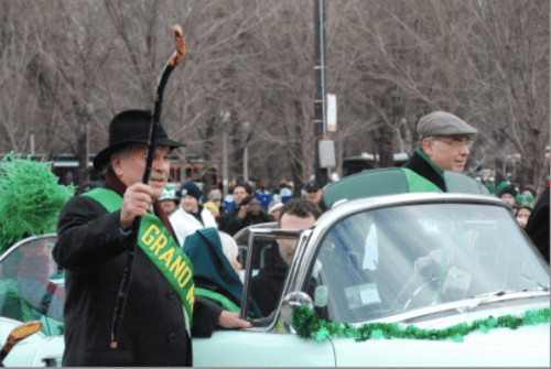 A sea of green dominated Chicago’s Columbus Drive, with parade participants and spectators, young and old, decked in various costumes, from funky to fashionable and bizarre. They greeted the mayor and first lady with cheers thanking them for their service to the city, and Daley acknowledged by raising a traditional Irish cane called shillelagh.