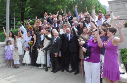 With Governor Pat Quinn and Chicago Mayor Rahm Emanuel lending their support, the couples exchanged vows before a huge crowd of family, friends and hundreds of spectators as well as the media.