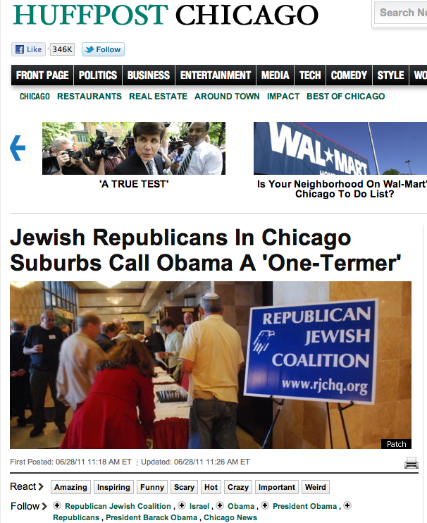 Michael Menis, president of RJC’s Chicago chapter, told Skokie Patch that his group was alarmed at Obama’s policies toward Israel.