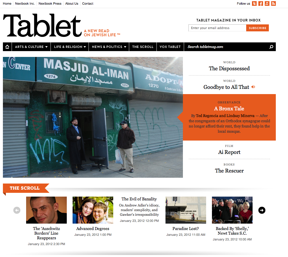 Tablet Magazine: Mosque, ultra-Orthodox synagogue share one roof in the Bronx 12/22/201101/23/2012 by Ted Regencia, posted in Bronx, Religion By Ted Regencia and Lindsay Minerva (Photography by Ted Regencia) To read the full story, please visit Tablet Magazine Share this: Share on Facebook (Opens in new window) Facebook Share on X (Opens in new window) X Email a link to a friend (Opens in new window) Email Like Loading...