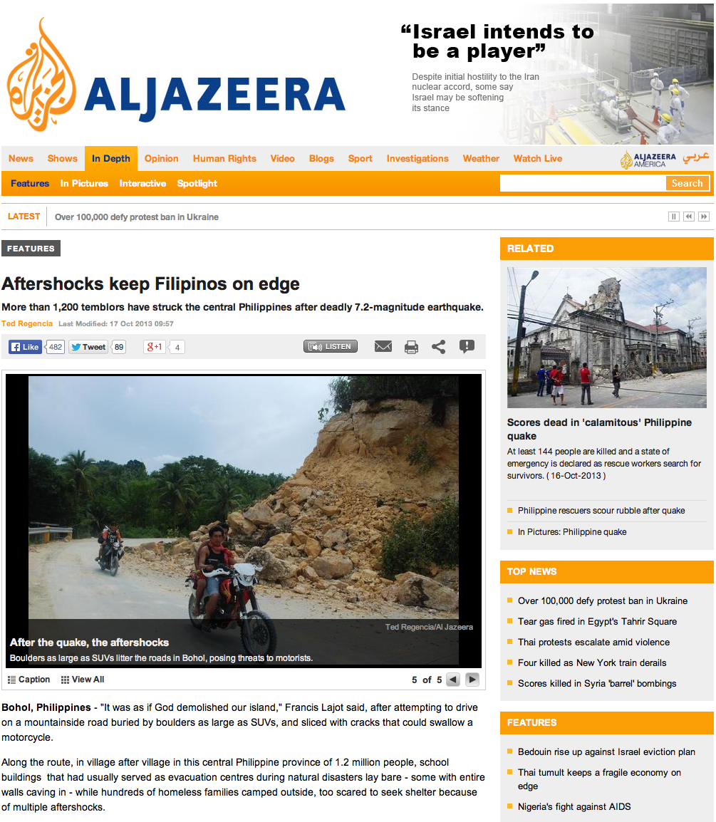 Aftershocks keep Filipinos on edge 12/01/2013 by Ted Regencia, posted in Asia, Environment, Philippines To read the full story, please visit the Al Jazeera website Share this: Share on Facebook (Opens in new window) Facebook Share on X (Opens in new window) X Email a link to a friend (Opens in new window) Email Like Loading...