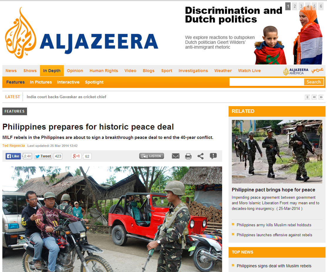 Philippines prepares for historic peace deal 03/27/2014 by Ted Regencia, posted in Uncategorized To read the full story, please visit the Al Jazeera website Share this: Share on Facebook (Opens in new window) Facebook Share on X (Opens in new window) X Email a link to a friend (Opens in new window) Email Like Loading...