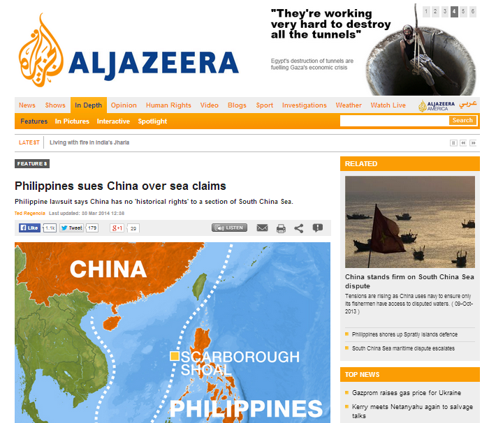Philippines sues China over sea claims 04/01/2014 by Ted Regencia, posted in Uncategorized To read the full story, please visit the Al Jazeera website Share this: Share on Facebook (Opens in new window) Facebook Share on X (Opens in new window) X Email a link to a friend (Opens in new window) Email Like Loading...
