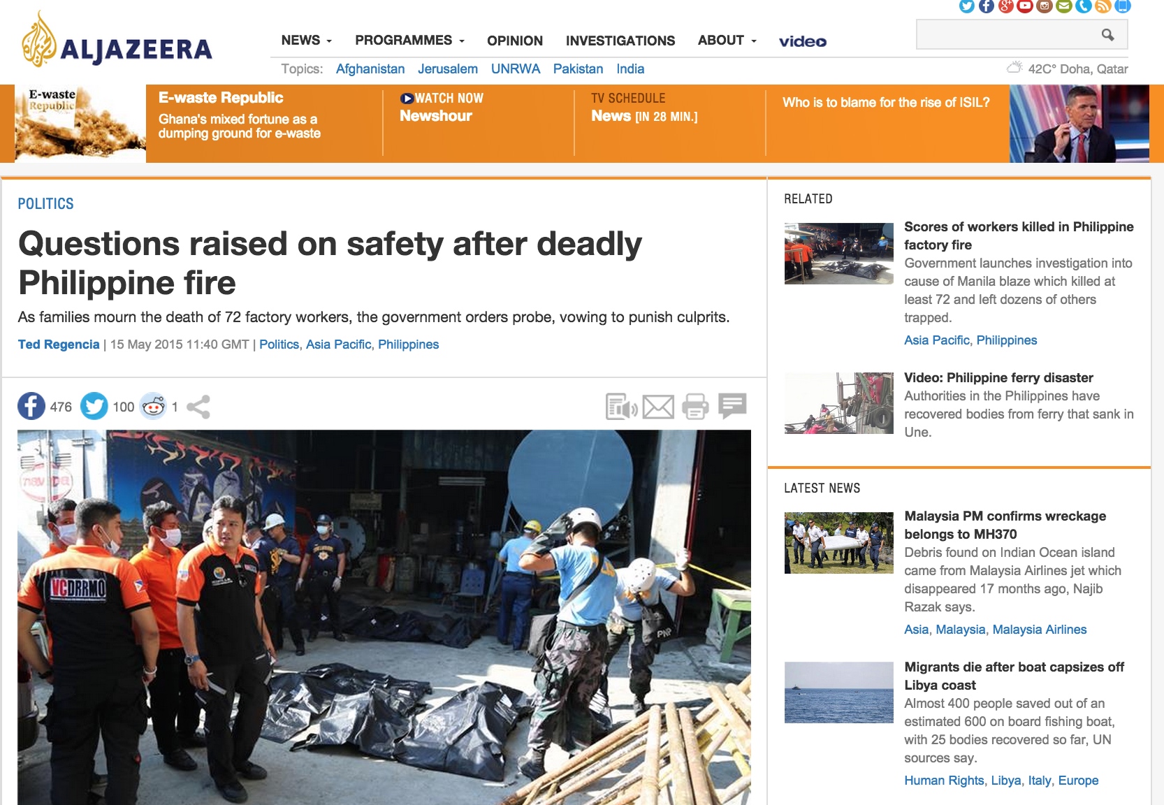 Questions raised on safety after deadly Philippine fire 08/05/2015 by Ted Regencia, posted in Uncategorized To read the full story, please visit the Al Jazeera English website. Share this: Share on Facebook (Opens in new window) Facebook Share on X (Opens in new window) X Email a link to a friend (Opens in new window) Email Like Loading...