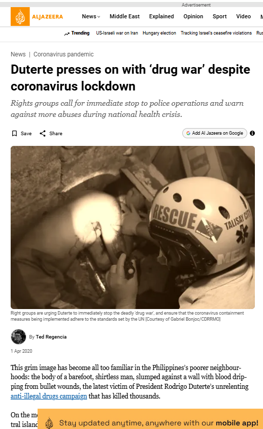 Duterte presses on with ‘drug war’ despite coronavirus lockdown