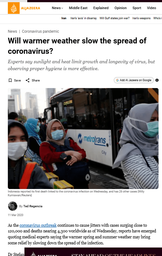 Will warmer weather slow the spread of coronavirus?