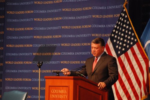 King Abdullah II bin al-Hussein of Jordan ponders about the Arab Spring and the future of the Middle East in a speech at Columbia University, Friday, Sept. 23, 2011. Abdullah was in New York for the annual United Nations Assembly, where he addressed Palestine’s quest for statehood. (TED REGENCIA)