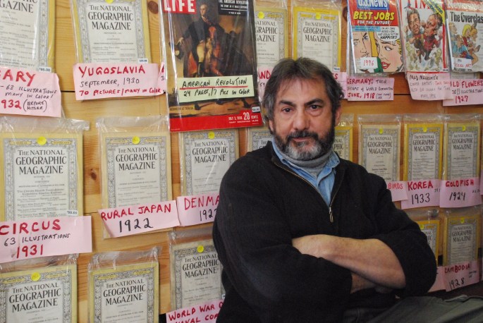 Bob Katzman at his Magazine Museum shop in Skokie, Illinois. Katzman claims to have 140,000 vintage magazines in his collection including copies of National Geographic from 1918. (TED REGENCIA)