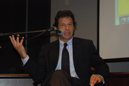 Former cricket star and Pakistani politician Imran Khan talks about his impending run for the premiership in Pakistan and the U.S. war on terror during a talk at the Columbia Journalism School, Friday, Oct. 14, 2011. (TED REGENCIA)