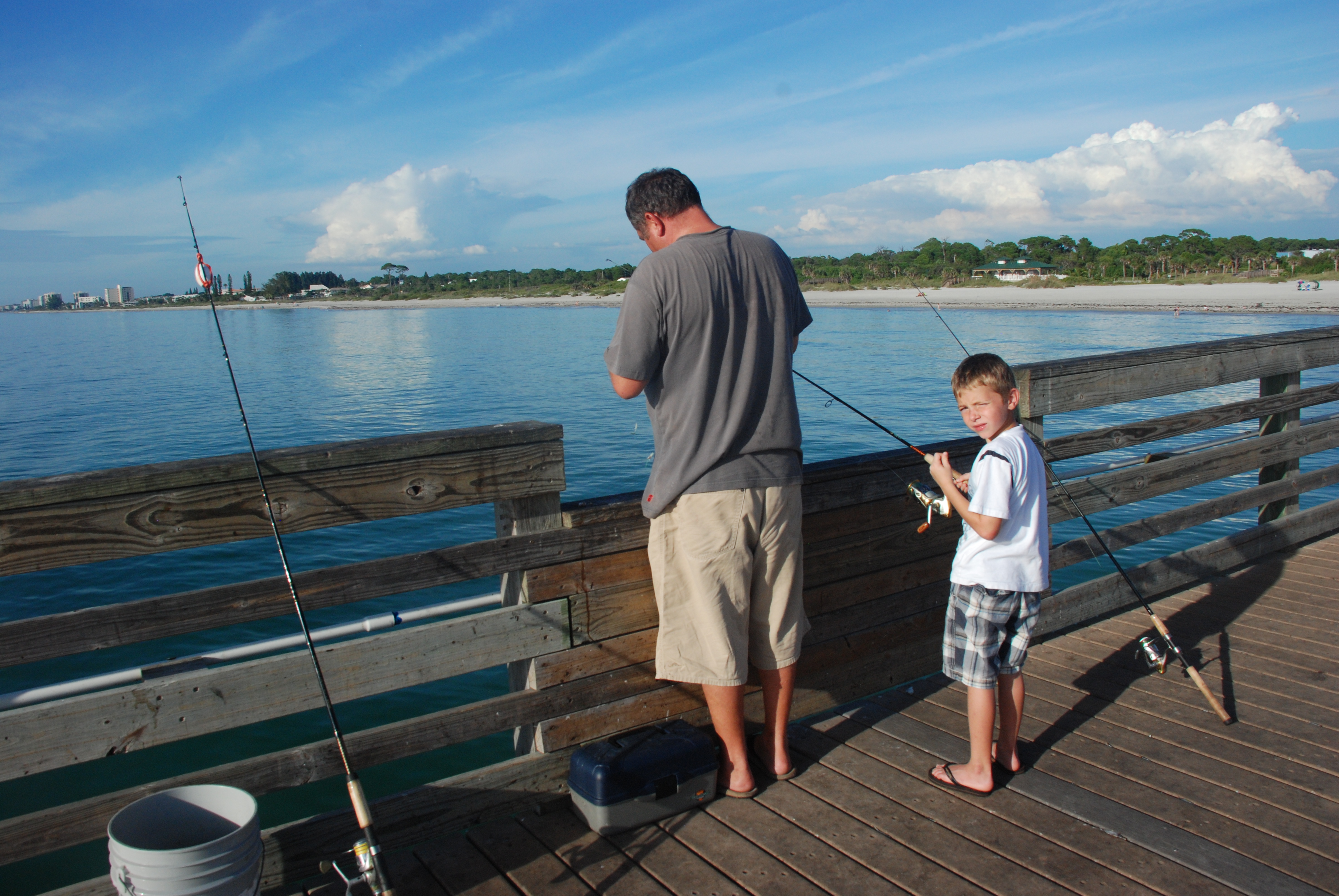 The Venice Fishing Port in Florida is a popular spot for families to hang out in the afternoon during the Summer and Fall. Here a father-and-son team prepares the bait for their fishing rods. (TED REGENCIA)