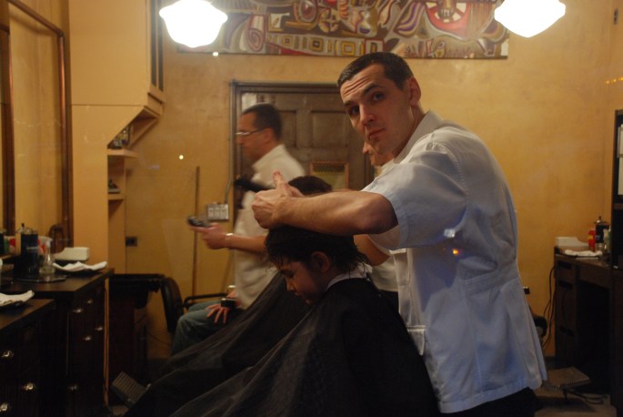 Getting a haircut at the Chelsea Barbers near the corner of 10th Ave. and 23rd St. in New York . (TED REGENCIA)