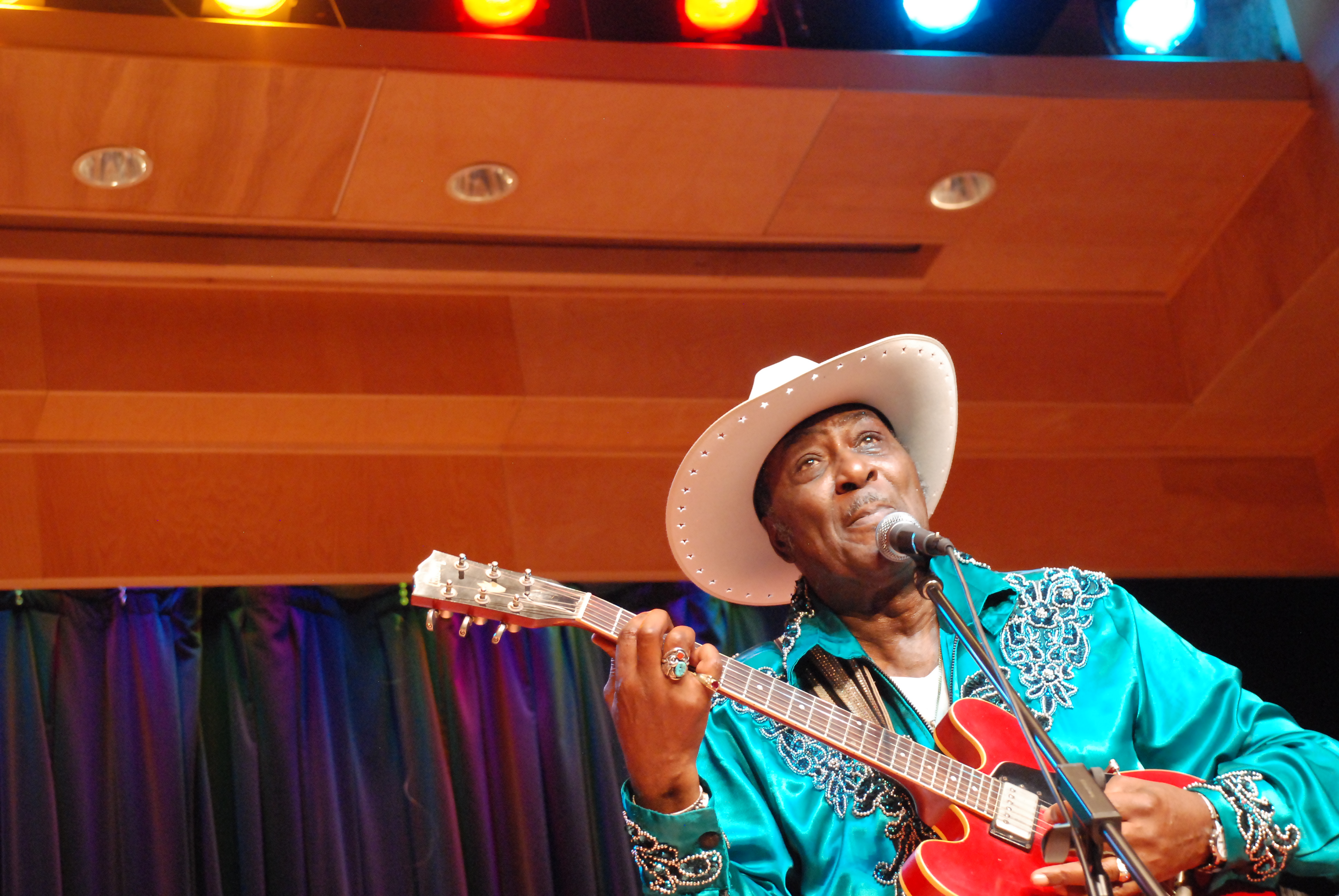 Blues musician Eddy Clearwater, whom The New York Times once raved about as an “exuberant entertainer who can turn a concert into a party,” rocks the Chicago music scene with his performance at Skokie Theatre, Sunday, Sept. 5, 2010. (TED REGENCIA)