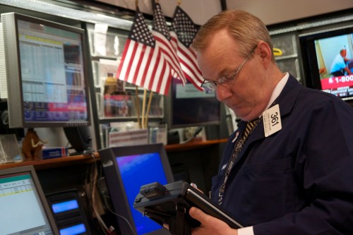 A trader at the New York Stock Exchange keeps tab of the market. (TED REGENCIA)