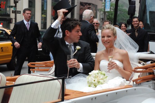 Celebrating a summer wedding at St. Patrick’s Catholic Church in New York City. (TED REGENCIA)