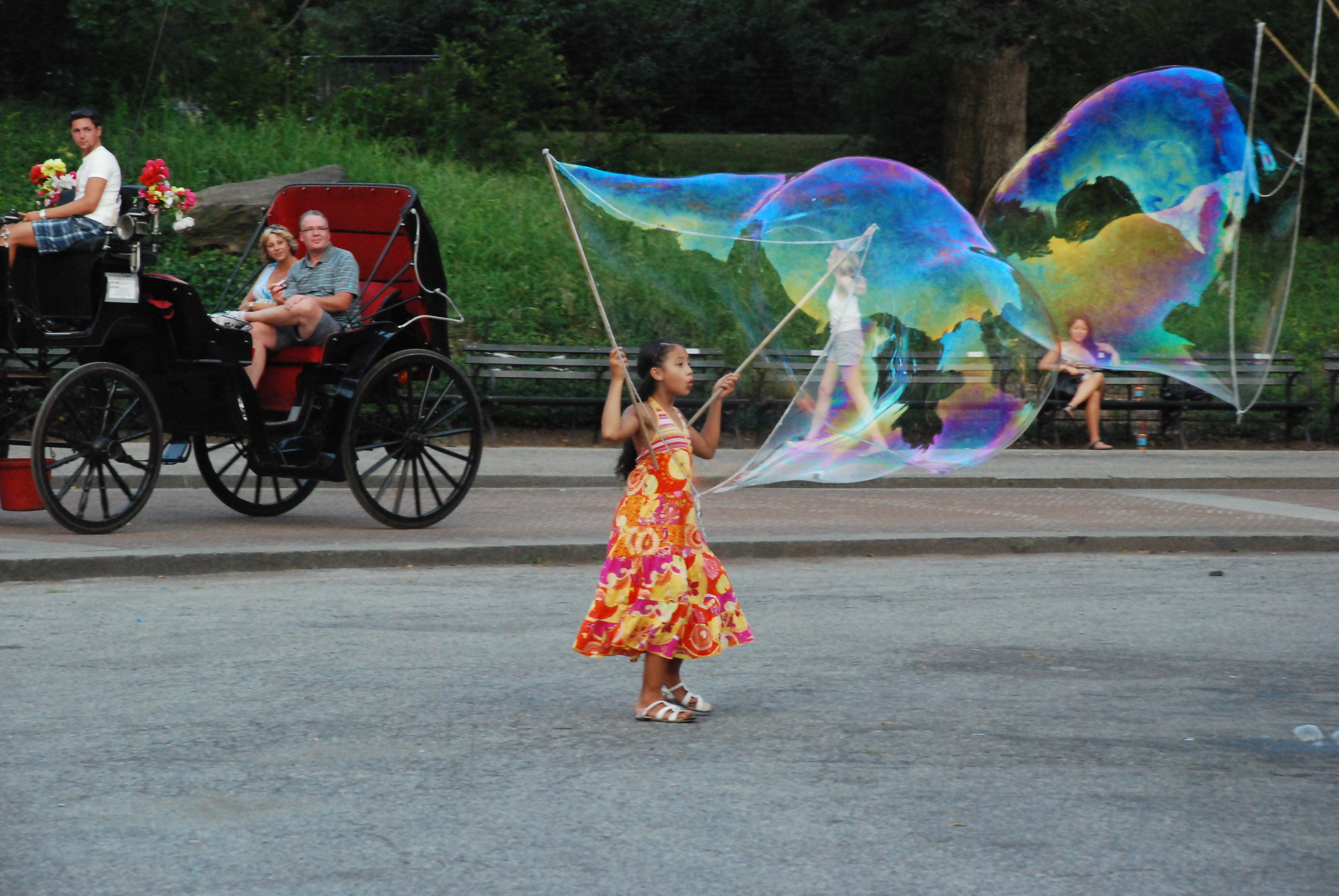 Blowing bubbles at Central Park in New York. (TED REGENCIA)